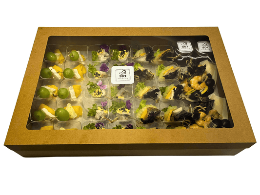 Welcome to the Box Catering Cyprus menu section! Here, you'll find our full range of delightful platters and ready-to-serve box catering solutions, all designed to make your event truly unforgettable. Discover a variety of tastes and styles, perfectly suited for any occasion.
